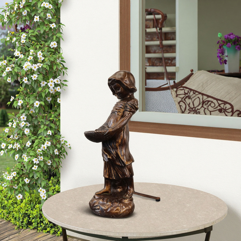 Bahçe dekorasyon için küçük kız kuş besleyici ve Birdbath, polydecoration güzel kız bahçe heykel