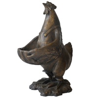 Polystone antik bronz tavuk kuş banyosu, bahçe vahşi kuş için kuş besleyici